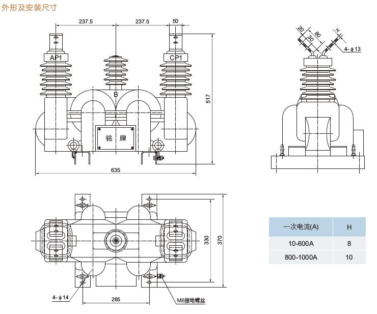 五、JLSZV2-6W、JLSZV2-10W戶外干式組合互感器尺寸