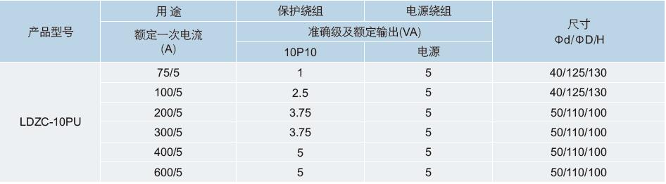 二、LDZC-10PU 保護、電源型電流互感器變比參數
