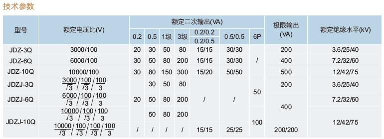 四、JDZ-6Q、JDZ-3Q、JDZ-10Q電壓互感器主要技參數: