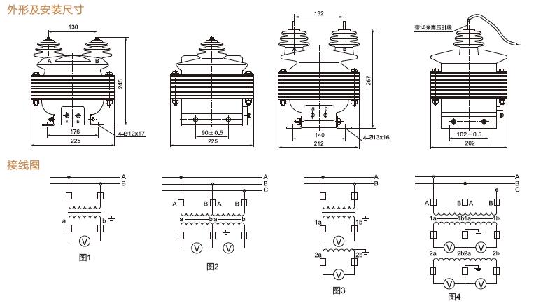 三、JDZ16-6、JDZ16-3、JDZ16-10戶外電壓互感器安裝尺寸及電壓互感器接線圖
