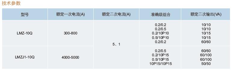 二、LZMJ1-10Q、LZM1-10Q全封閉電流互感器電流比