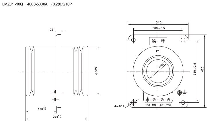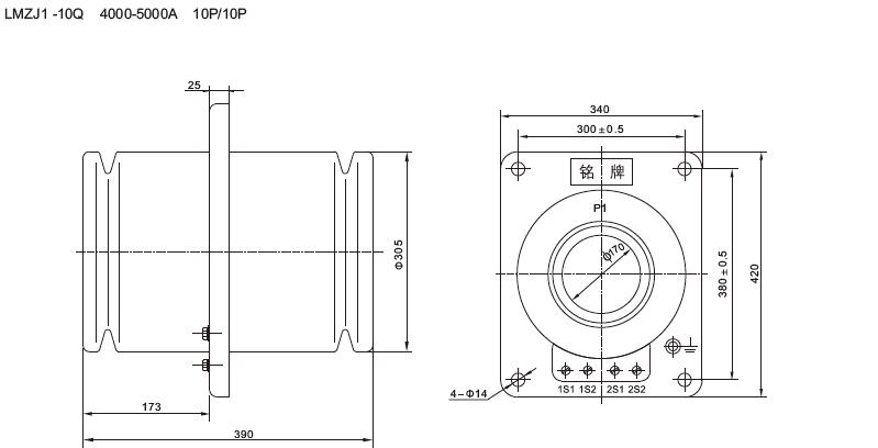 三、LZMJ1-10Q、LZM1-10Q全封閉電流互感器外形及安裝尺寸
