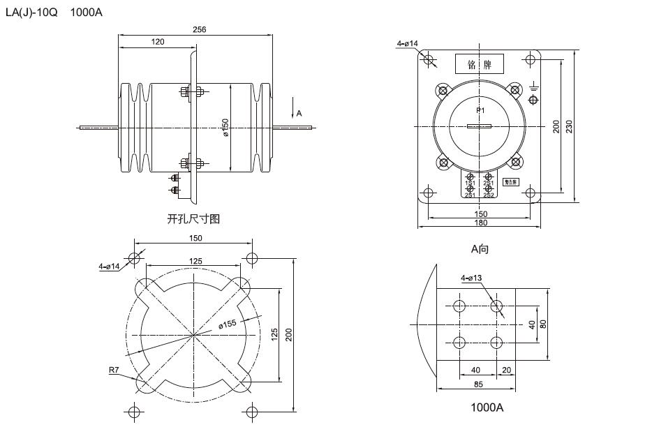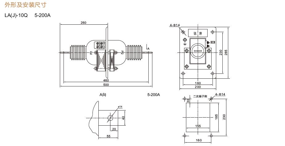 三、LA-10、LAJ-10Q穿墻式電流互感器產(chǎn)品外形及安裝尺寸