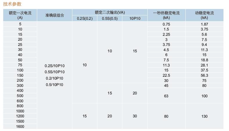 3.額定一次電流、準確級組合、額定輸出及額定動、熱穩定電流見下表