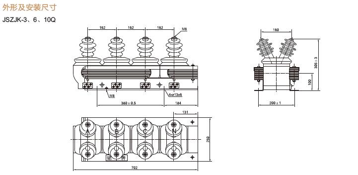 JSZJK-3、JSZJK-6、JSZJK-10Q電壓互感器為三相,戶內、干式產品,JSZK-3、6、10Q為Yo/Y連接,抗諧振部分為單獨一器身。適用于額定頻率50Hz或60HZ,額定電壓分別為3、6、10kV電力系統中作電能計量,電壓監控和繼電保護用。JSZJK-10Q電壓互感器為戶內環氧樹脂全真空澆注結構。