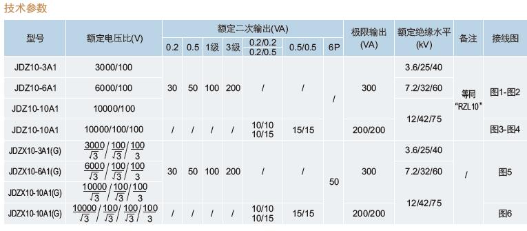二、JDZ10-3A1(G)、JDZ10-6A1(G)、JDZ10-10A1(G)電壓互感器技術(shù)參數(shù)